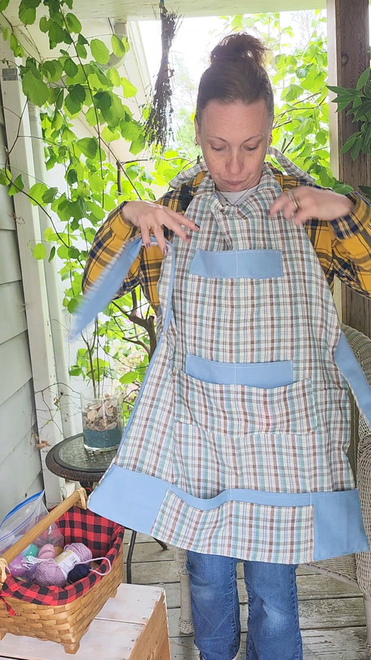 Handmade Apron - Reversible Versatile Apron Eggpron Blue & White Plaid Design