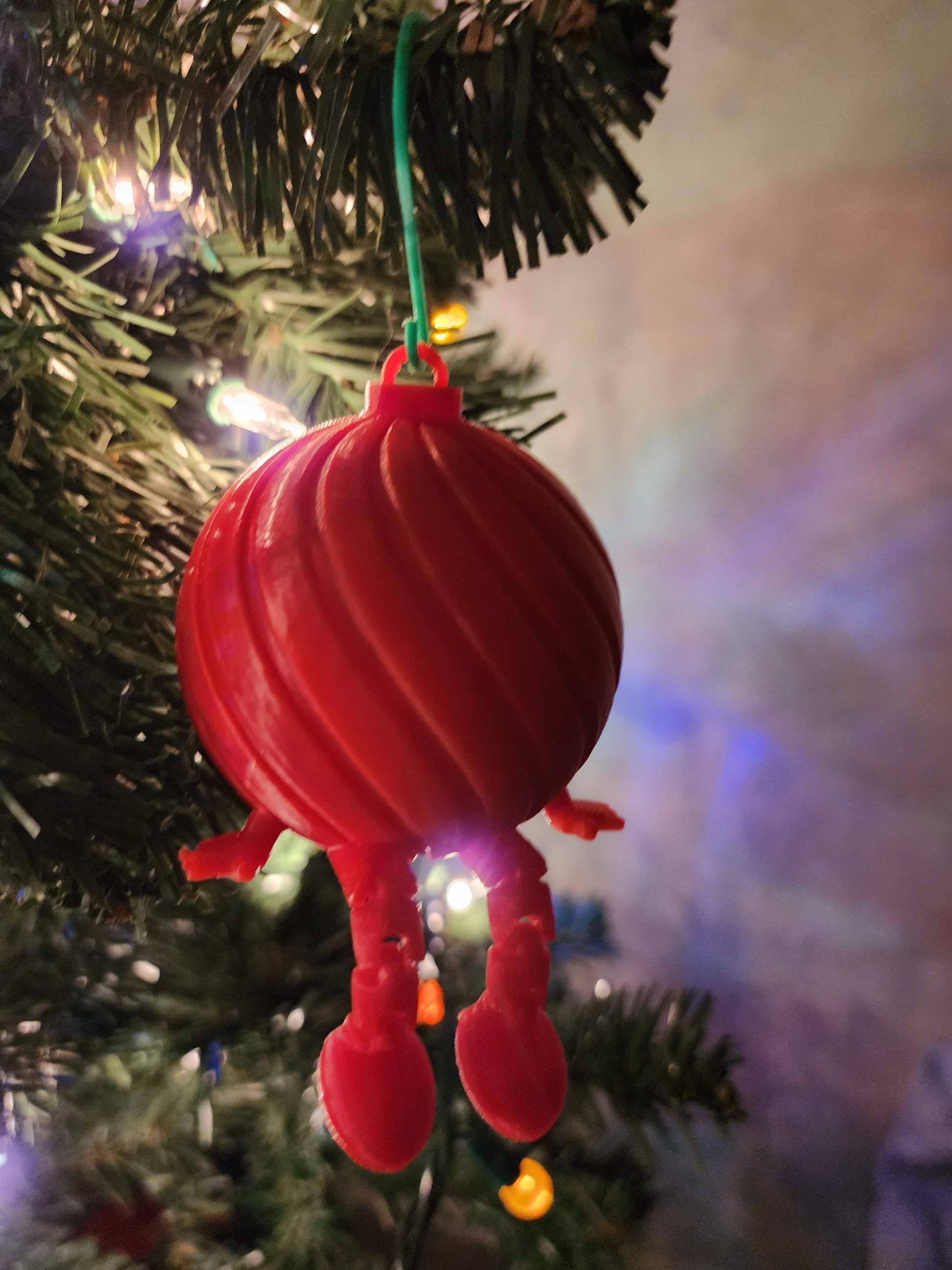 3D Printed Christmas Ornament Red Christmas Ball with Leg